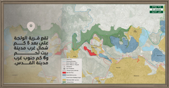 تظهر الولجة آثار استمرار مصادرة الأراضي الفلسطينية من قبل الحكومة الإسرائيلية وقمع الفلسطينيين، واللذان يشكلان جزءً لا يتجزأ من الاحتلال: