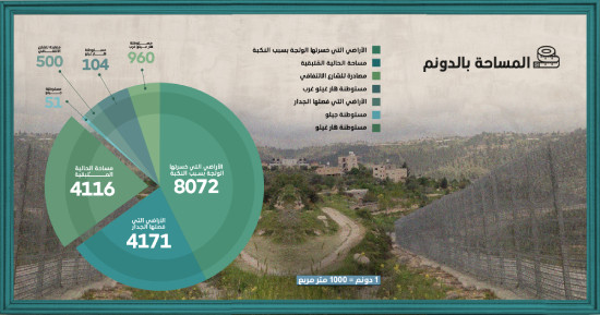 - تقليل مصادر الدخل بسبب تقليل مساحة الأراضي الزراعية وتقييد الوصول إلى الأسواق وأماكن العمل مما يزيد من نسبة البطالة التي تبلغ حالياً 40% في القرية مقابل 18% في الضفة الغربية كاملة.