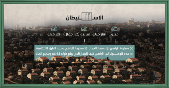 في السبعينات: تم مصادرة 0.123 كيلومتر مربع أخرى من قبل السلطات الإسرائيلية لبناء المستوطنات الإسرائيلية غير القانونية جيلو وهار جيلو.